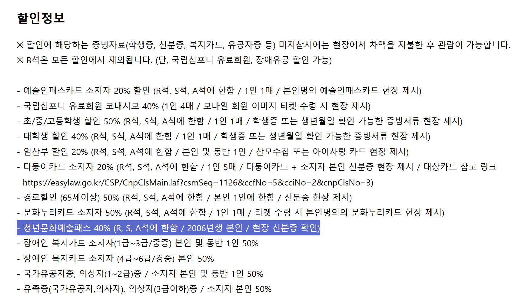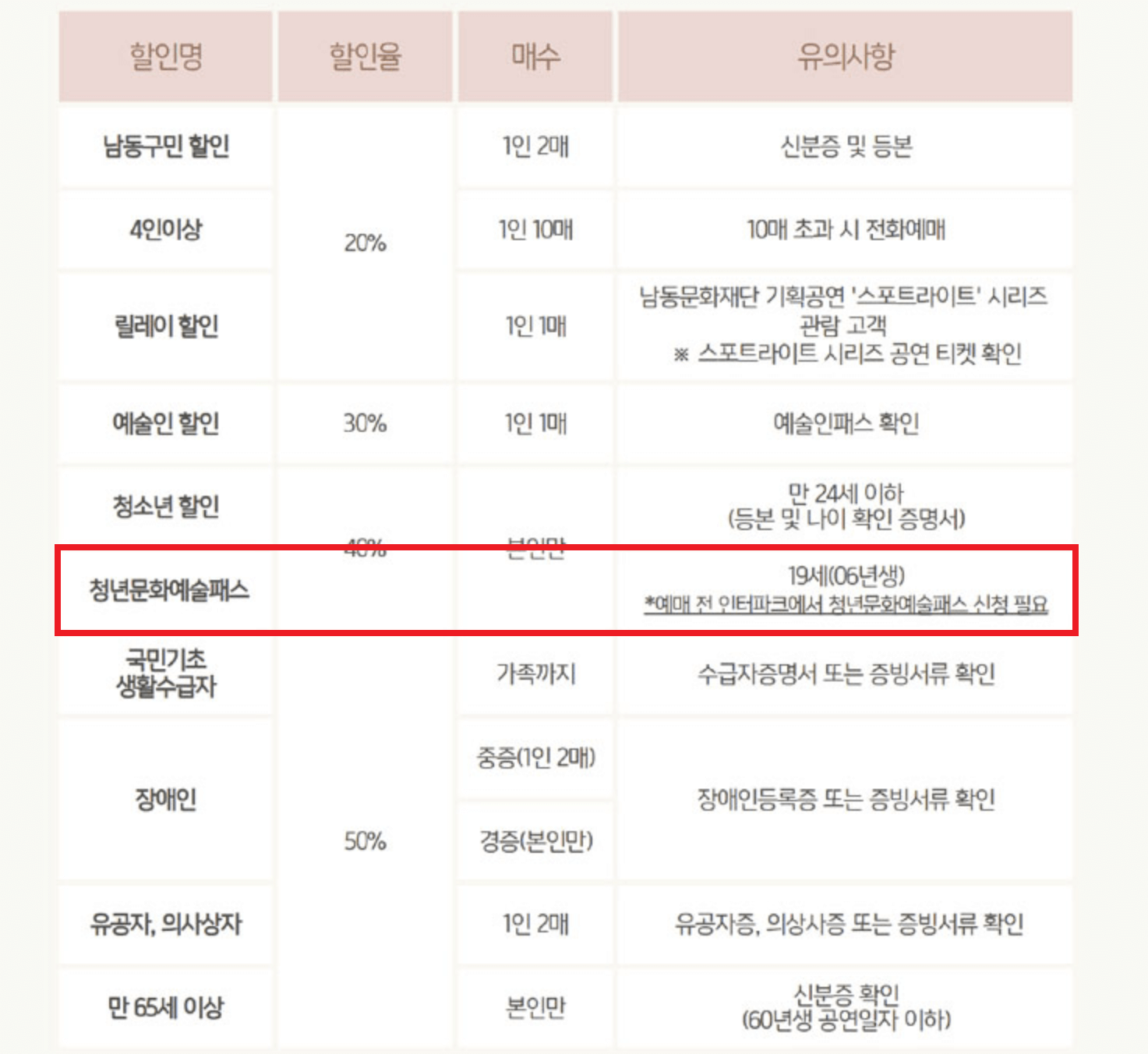 - 청년문화예술패스 적용 여부 확인: ‘청년문화예술패스 적용 가능’ 여부 체크