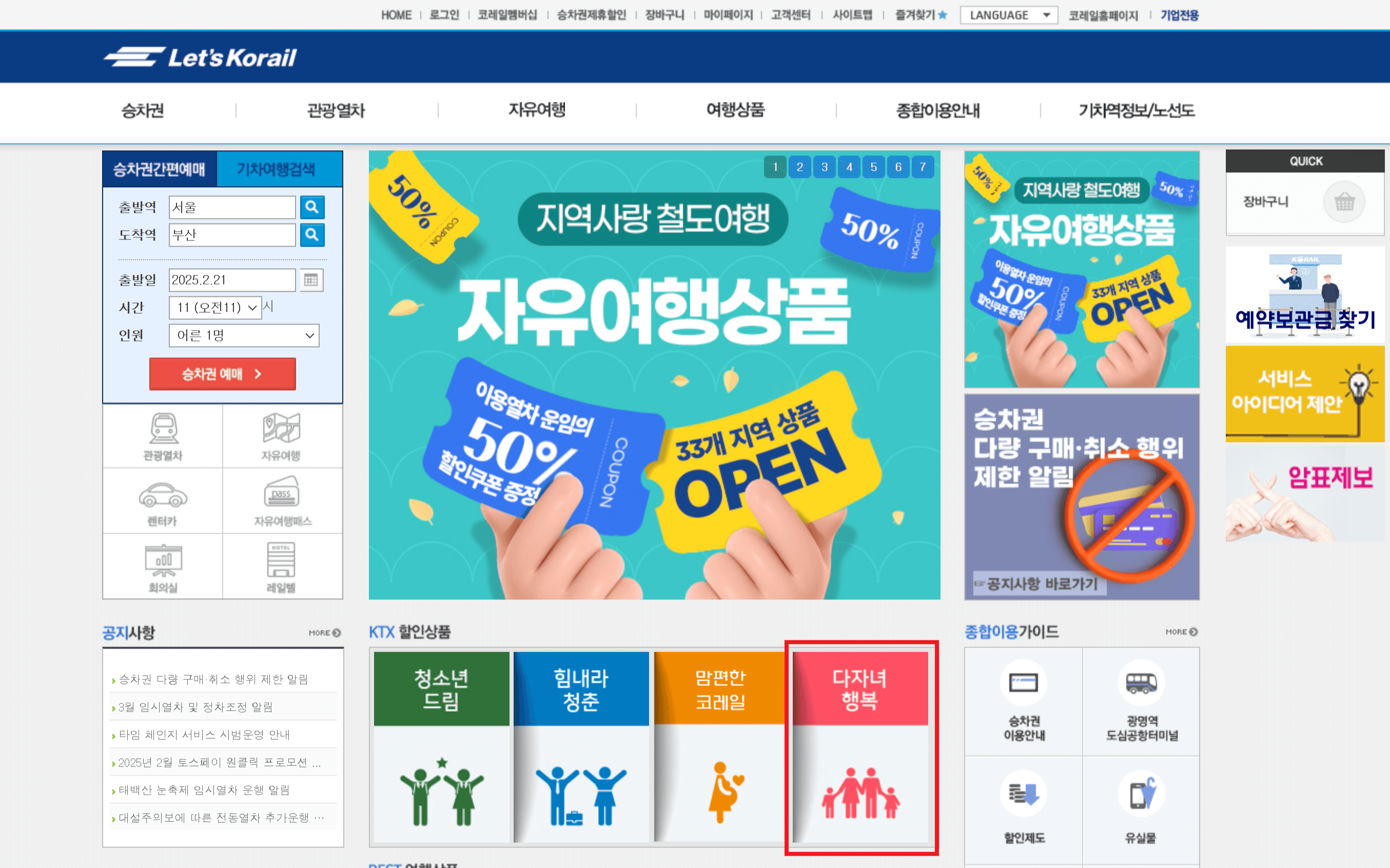 - 할인 적용 방법: 승차권 예매 시 '다자녀 행복' 할인 옵션을 선택하여 적용