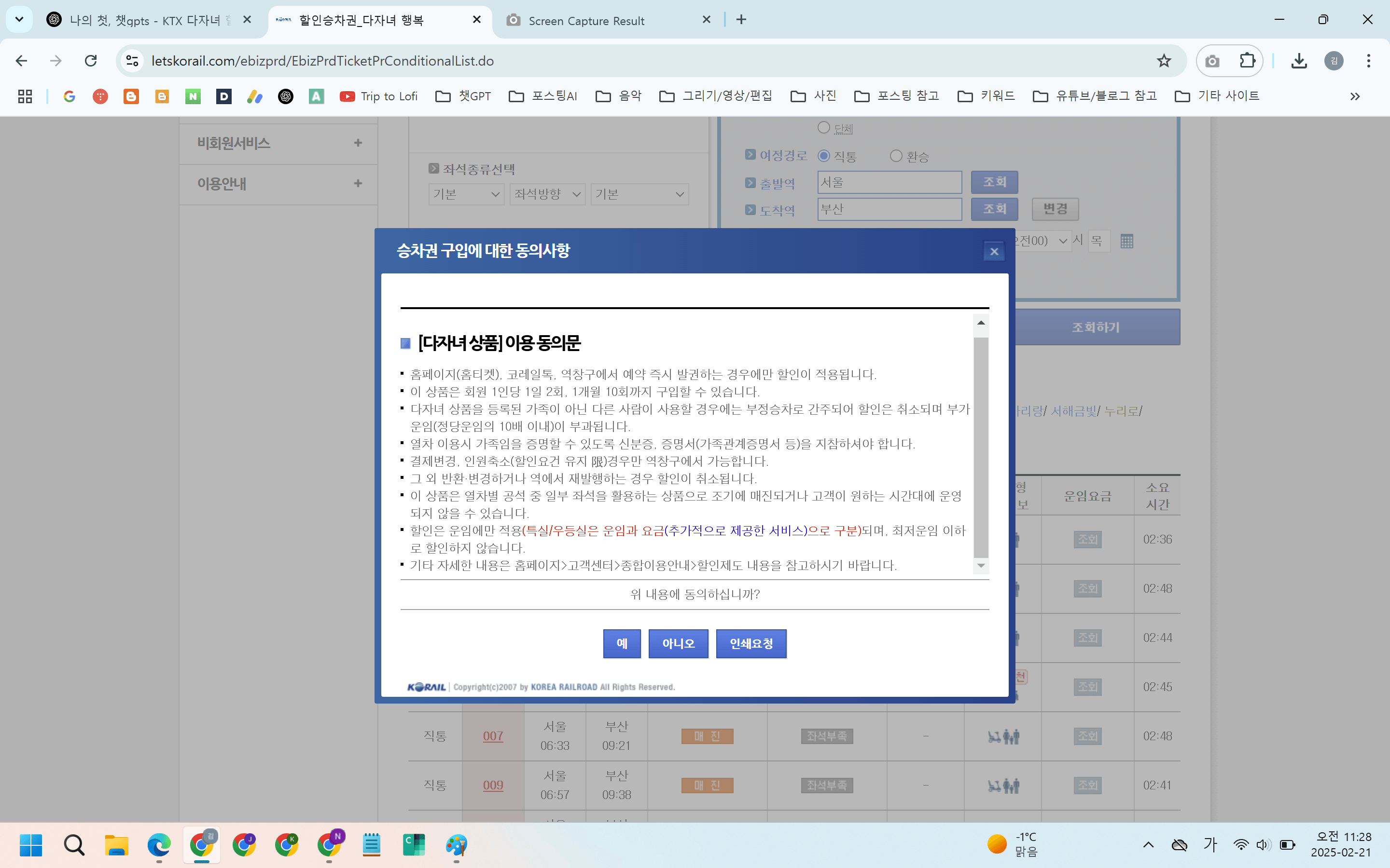 - 명절 특별 수송기간 제외: 철도공사에서 지정한 명절 특별 수송 기간에는 할인이 제한될 수 있습니다.