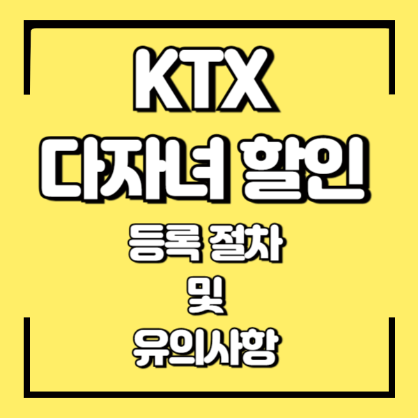 최근 다자녀 가정으로서 생활비 절감 방법을 찾던 중, KTX에서 제공하는 다자녀 할인 혜택을 알게 되었습니다. 교통비는 가계에 적지 않은 부담이 될 수 있는 요소이기에, 이러한 혜택을 적극 활용하면 경제적 부담을 완화하는 데 도움이 될 것 같습니다. 이에 따라 KTX 다자녀 할인 제도에 대해 조사하였고, 그 내용을 상세히 공유하고자 합니다. 다자녀 가정을 위한 실질적인 혜택과 등록 절차, 유의사항 등을 정리하였으니 참고하시어 유용하게 활용하시기 바랍니다.